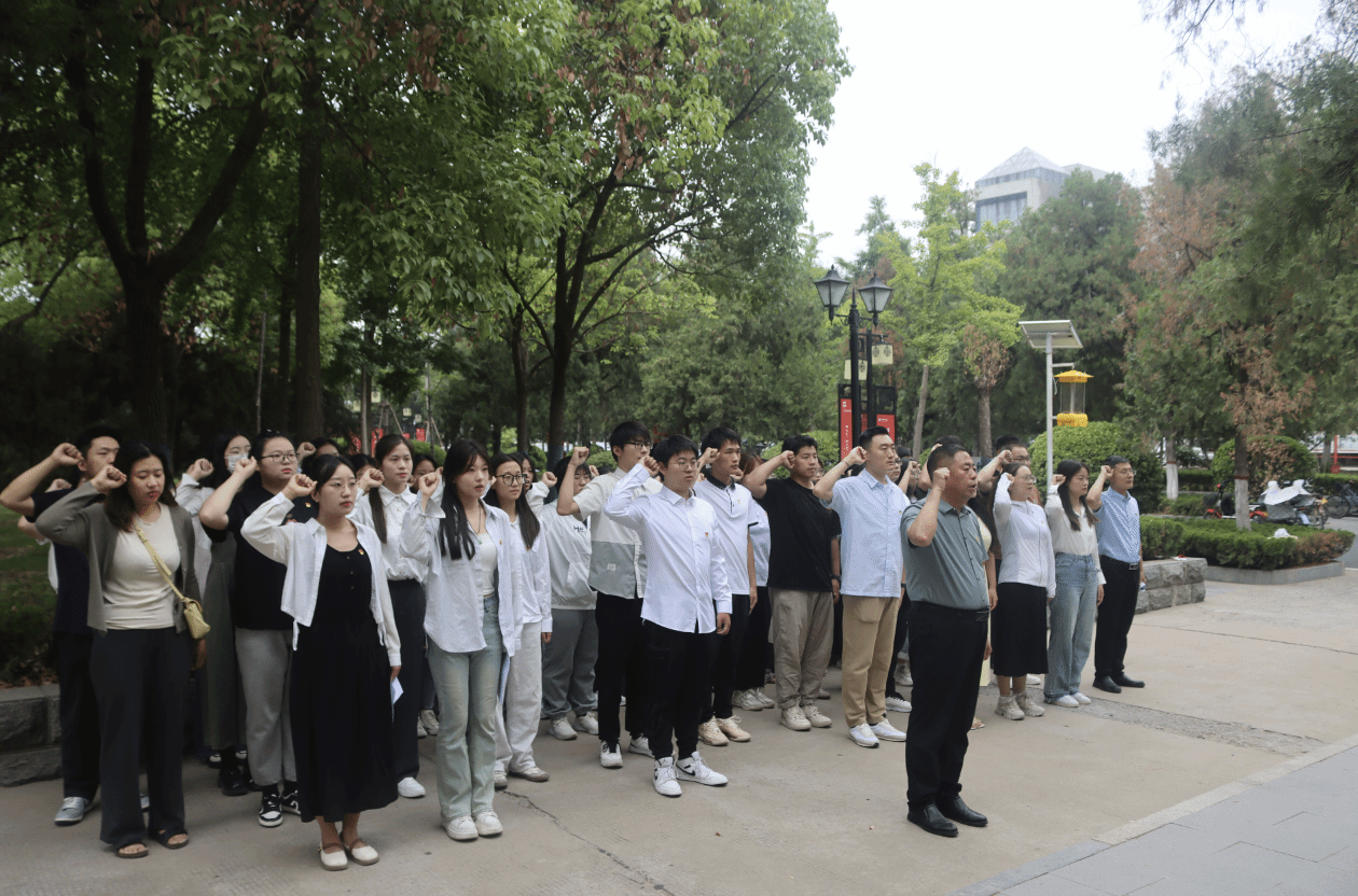 党委在明伦校区六号楼李大钊同志塑像前举行新党员入党宣誓暨毕业生党员重温入党誓词仪式。党委书记张占党、党委副书记周文凯、学生党支部书记和新发展党员及毕业生党员代表参加活动。仪式由麻豆社