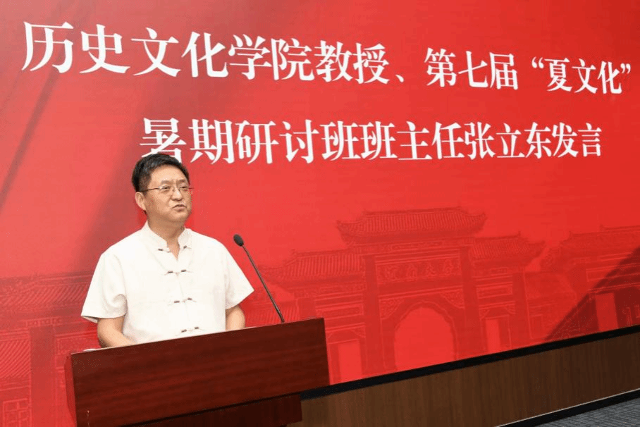 张立东作总结发言。他介绍了本届研讨班的课程设置、学员构成、课堂纪律等情况,希望学员们可以以本届“夏文化”暑期研讨班的举办为契机,增强对夏文化的认识。