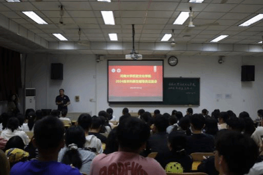 的百年发展历程,激发同学们知校、爱校、荣校的主人翁意识,有效地拉近了师生距离。团委副书记贾茜贝以学生手册为依据,向学生详细宣讲学校各项规章制度,她提醒大家,规章制度不是束缚,而是引导和保护。2024级本科生辅导员田管宁详细讲解了大学生活的方方面面,从学习规划到社团活动,从人际交往到心理健康,鼓励同学们要树立明确的目标,充分利用大学提供的各种资源,不断提升自身的综合素质。