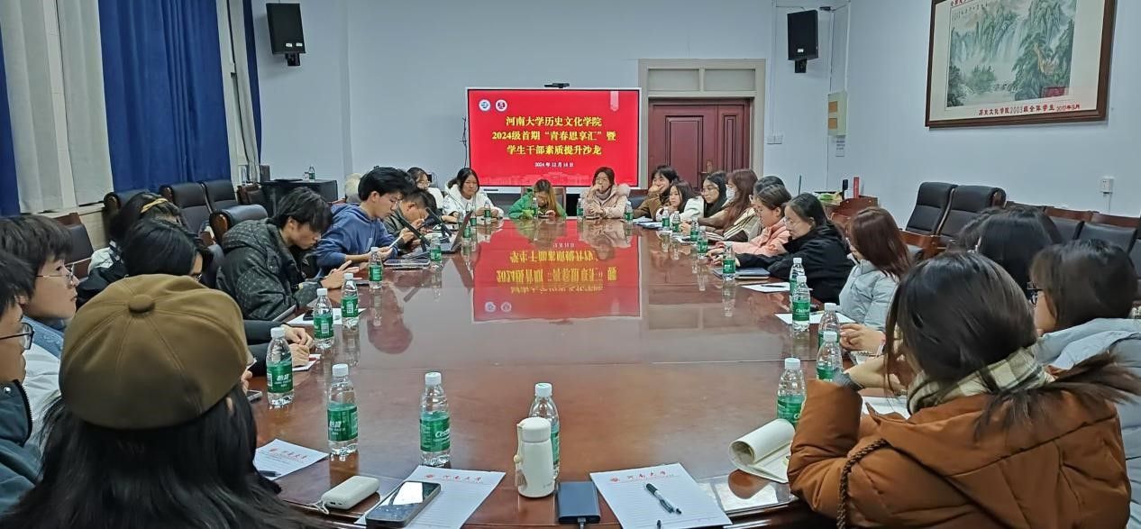 2024级首期“青春思享汇”暨学生干部素质提升沙龙在学院三楼会议室顺利举行。2024级本科生辅导员田管宁及全体学生干部与会,沙龙由2024级年级长詹本维同学主持。
