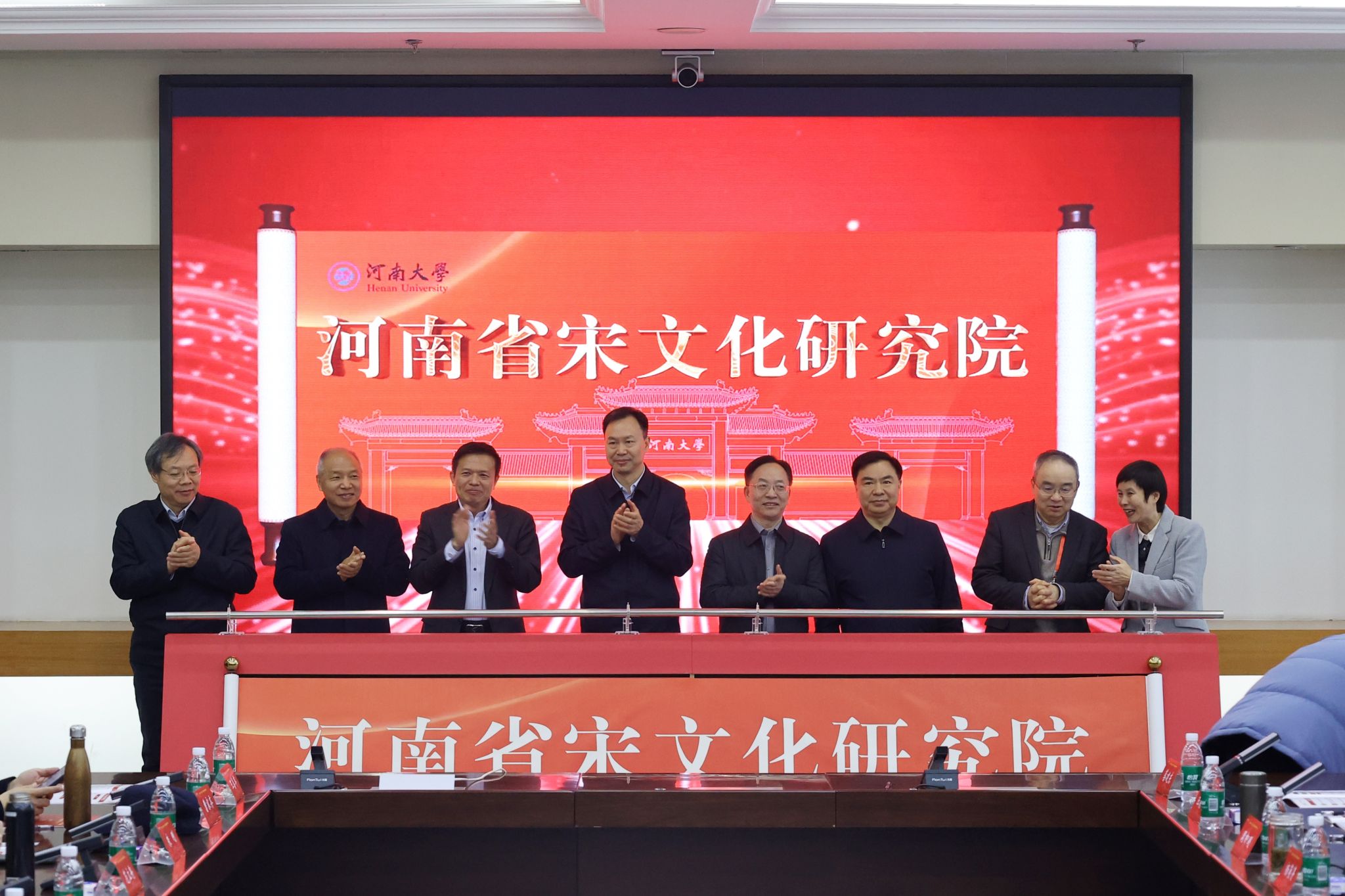 随后,黄玉国、李庚香、吕冰、吕承俊、邵华、季波、包伟民、乔清举共同为河南省宋文化研究院揭牌。