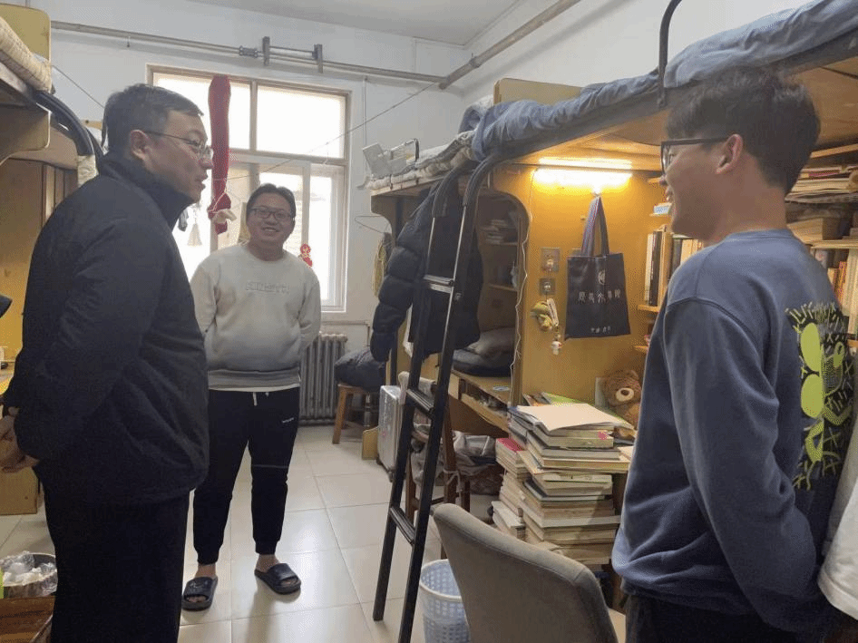 在宿舍,检查组详细询问了大家宿舍环境是否舒心、饭菜是否可口以及学习资源是否充足等,提醒大家一定要注意身边的安全问题,必须始终树立安全第一的思想意识,才能最大程度上减少个人的损失,实现安心和静心学习,并根据不同年级分别提出了大家在学业和就业上应该注意的问题,最后,祝愿大家在充满希望的2025年学业精进,万事顺遂。