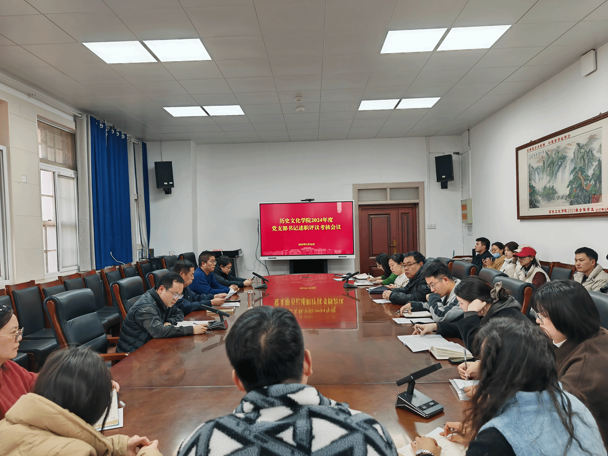 在三楼会议室召开2024年度党支部书记述职评议考核会议。学院党委委员、全体党支部书记及师生代表参加会议。会议由党委委员、副院长陈升远主持。