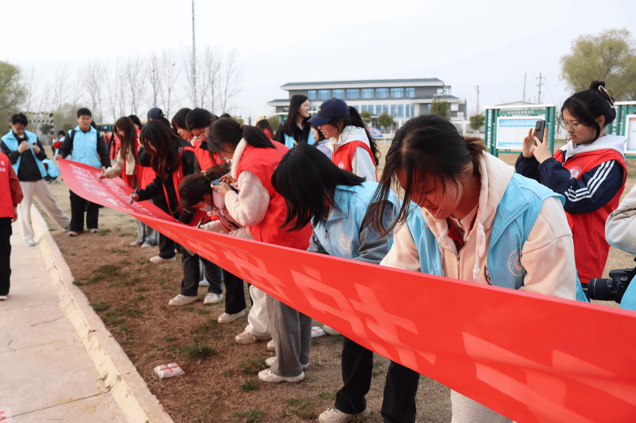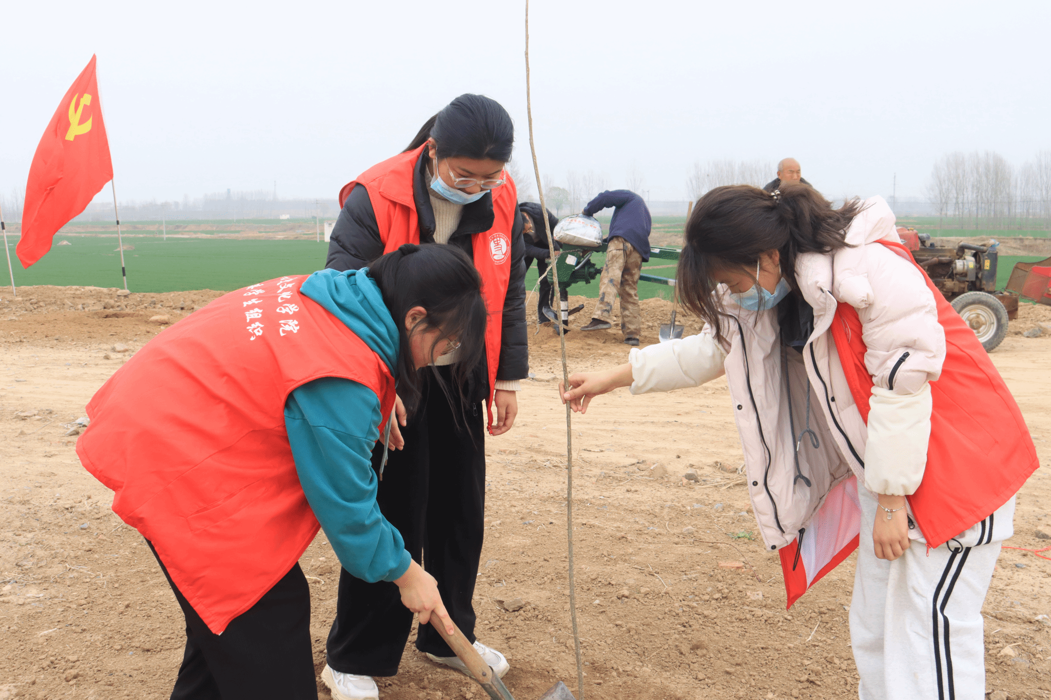 习近平总书记强调:“植树造林是实现天蓝、地绿、水净的关键途径,是最具普惠性的民生工程。”在新乡市封丘段黄河大堤,师生代表与封丘河务局机关第一党支部联合开展了植树造林活动。在河务局工作人员的指导下,植树活动采取三人一组,双线并进的模式,一名同学负责扶正树苗,确保其垂直种植;另外两名同学则使用铁锹铲土填坑并压实土壤,分工明确,协作默契。在师生的共同努力下,原本荒芜的土地被林立的300棵树苗所覆盖,焕发出勃勃生机。参与植树的娄洞梁同学表示“通过参加植树活动,与同学挥锹培土时,突然懂得每株树苗都是绿色生命的诺言,生态文明建设不是口号。我十分乐意以实际行动践行绿色发展理念,弘扬志愿服务精神,为黄河流域生态保护贡献自己的力量。”