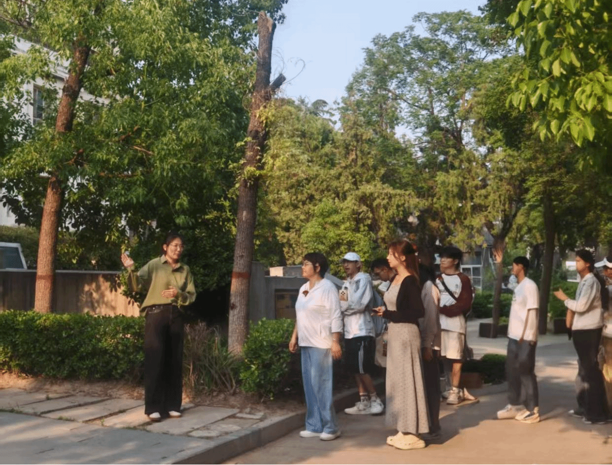 明伦校区,滕老师邀请文化旅游学院团委学生会导游部2024级王妍翯为同学们讲解了明伦校区的近现代建筑群、开封古城墙、铁塔以及为麻豆社