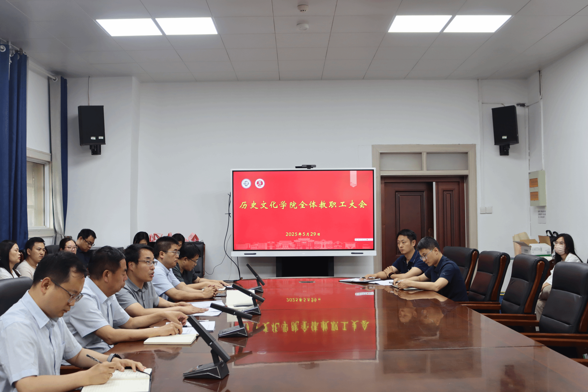 在三楼会议室召开全体教职工大会。学院领导班子成员、全体教职工参会,会议由院长祁琛云主持。