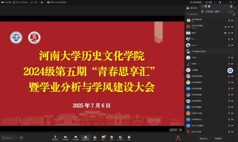 2024级第五期“青春思享汇”暨学业分析与学风建设大会通过线上会议顺利举行。本次会议由2024级本科生辅导员田管宁主持,2024级全体学生参会。