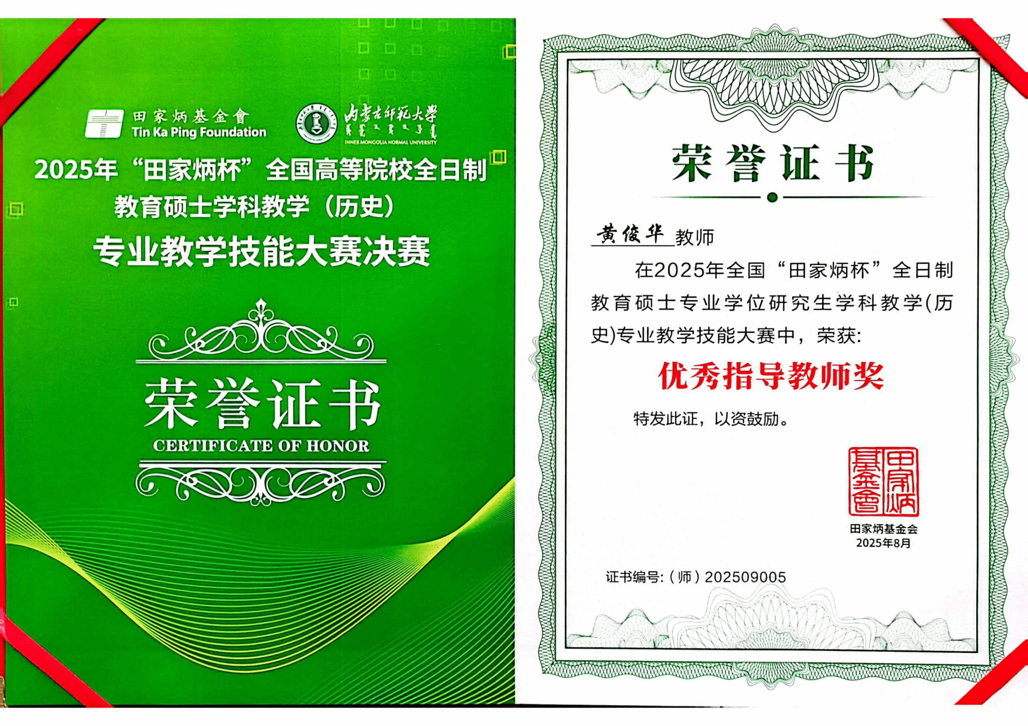 8月22-26日,2025年全国“田家炳杯”全日制教育硕士专业学位研究生学科教学(历史)专业教学技能大赛在内蒙古师范大学圆满落下帷幕。