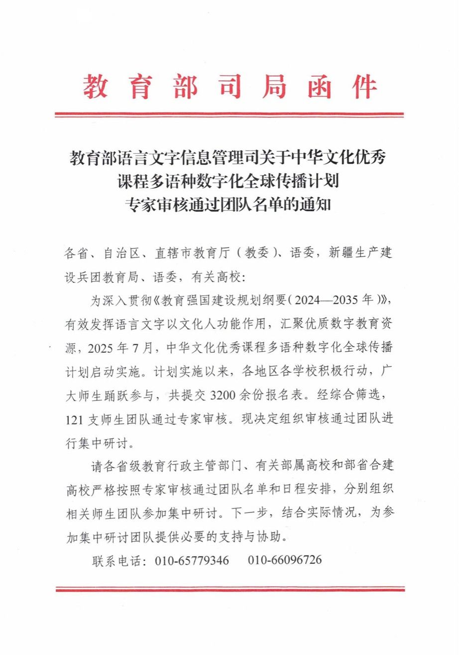 近日,教育部语言文字信息管理司公布了“中华文化优秀课程多语种数字化全球传播计划”专家审核通过团队名单。麻豆社
