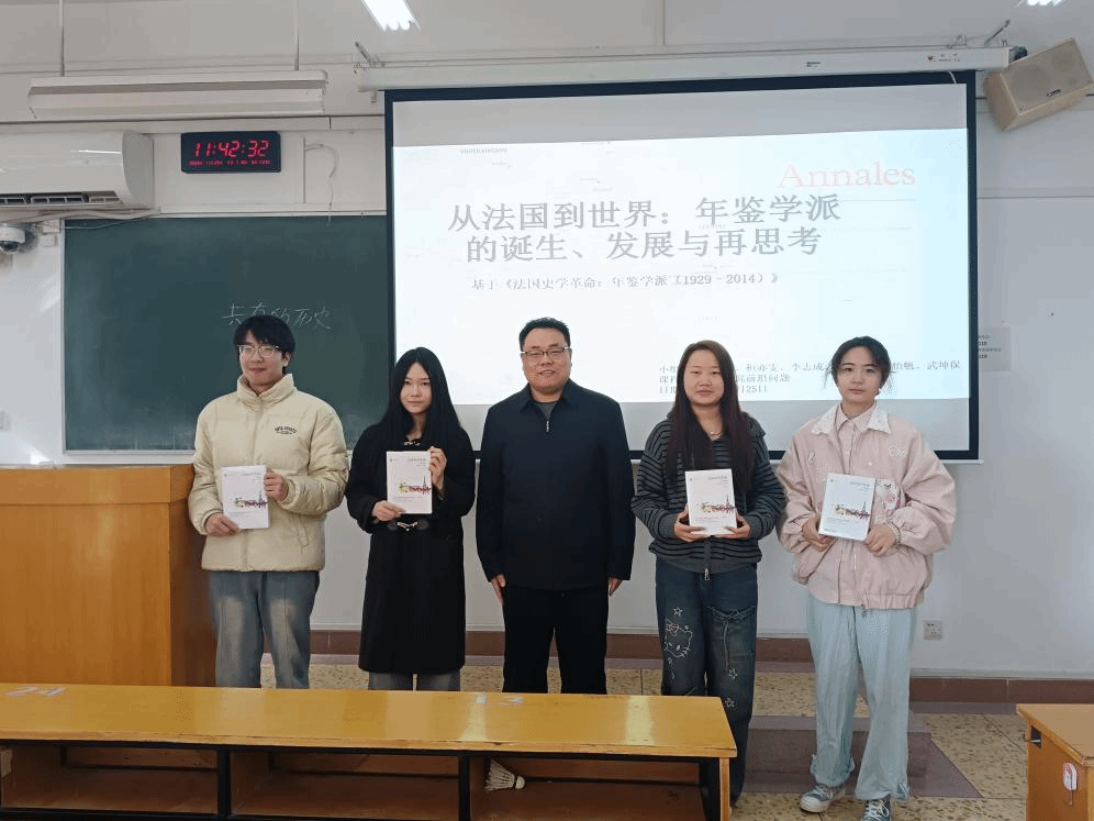 世界史系、区域与国别研究院主办的“明德计划”世界史实验班系列读书会在明伦校区综合楼406教室举行。本次会议围绕彼得·伯克《法国史学革命:年鉴学派,1929—2014》一书展开汇报交流,由世界史教研室杨磊老师领读,2022级、2023级、2024级实验班全体同学参加活动。