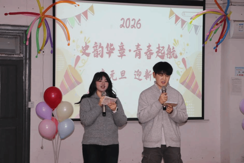 “史韵华章·青春启航”2026年研究生元旦晚会在学院一楼111教室温情上演。师生欢聚一堂,以青春之名,赴历史之约,用歌声、舞蹈、欢笑与感动,共同迎接新年的到来,表达了对未来的美好祝福与期待。