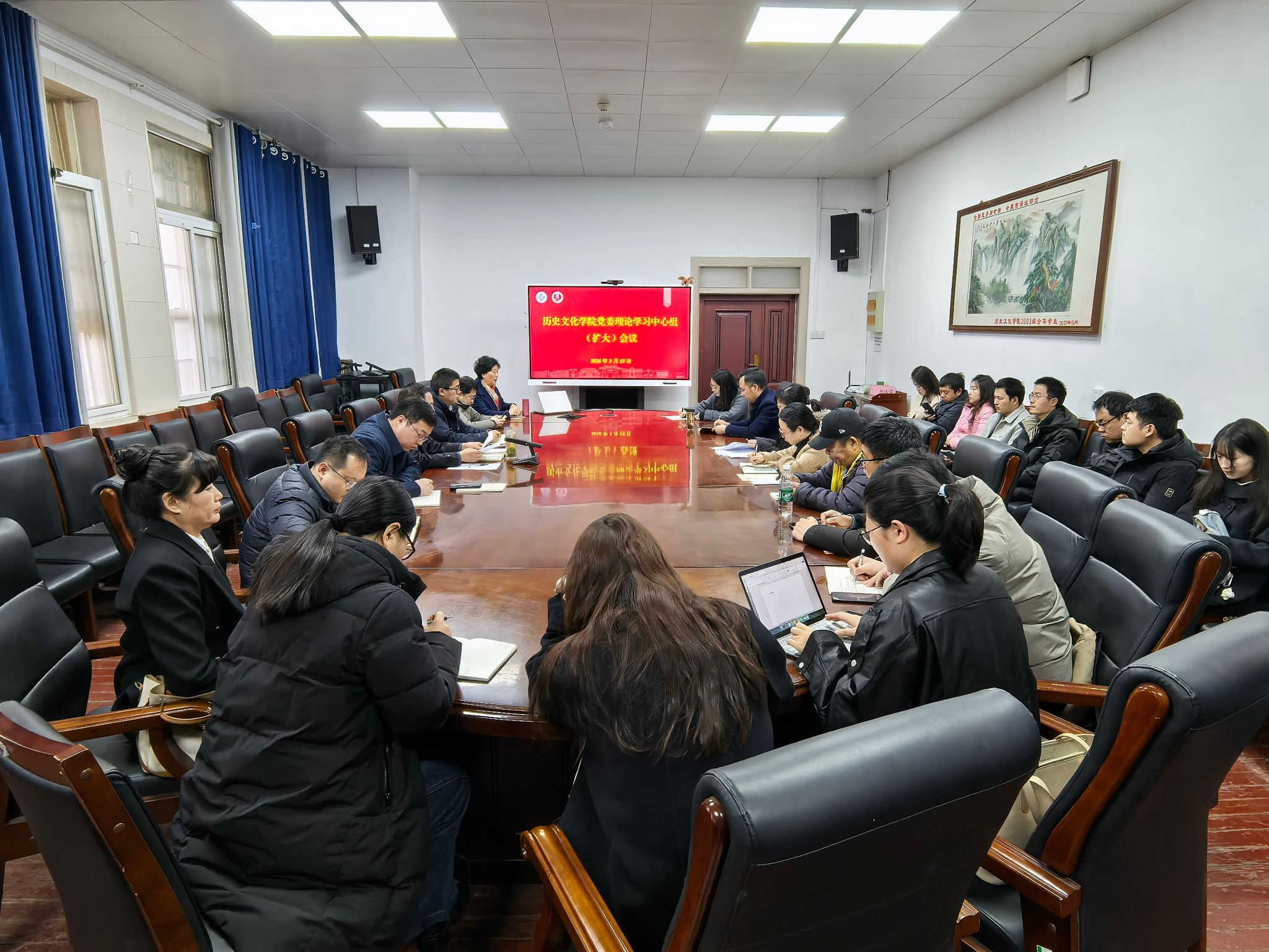 在三楼会议室召开党委理论学习中心组(扩大)会议,传达学习习近平总书记在全国两会期间的重要讲话和全国两会精神。学院党委委员、各党支部书记、教研室主任、科室负责人及教师代表参加,学院党委书记张占党主持。