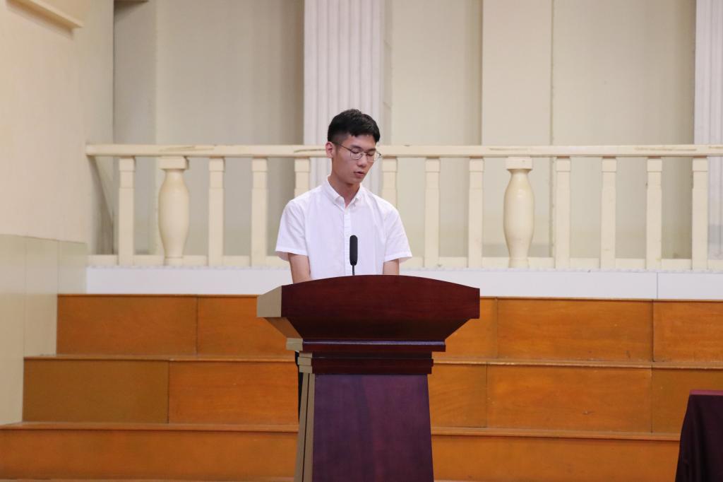 新生代表2019级本科生陆天在发言中谈到,大学是一个全新的起点,也是一个承载梦想的平台,应充分把握机会,对自己的大学生活做出完备的规划,确定目标,调整心态,在学习中开拓眼界,在磨砺中提升品性,将自己打造成一个德才兼备、积极创新、责任扛肩的新时代青年。