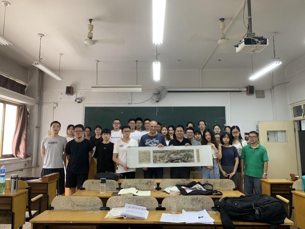 张礼刚院长为Marek准备了一份开封特色的《清明上河图》汴绣作为饯别礼物,全体师生一起合影留念。