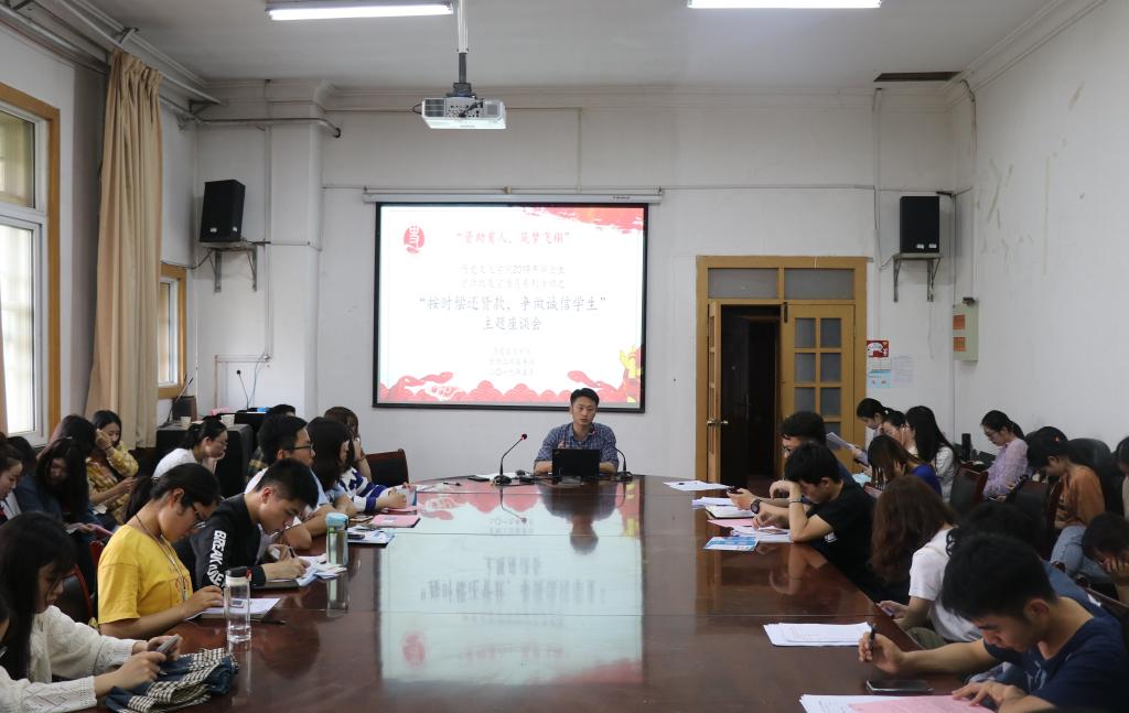 2019届本科毕业生资助政策宣传月系列活动之“按时偿还贷款,争做诚信学生”主题座谈会在学院三楼会议室举办,麻豆社