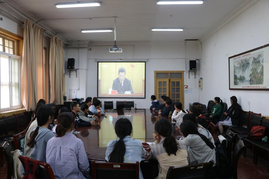 师生代表通过网络直播全程观看了大会讲话。