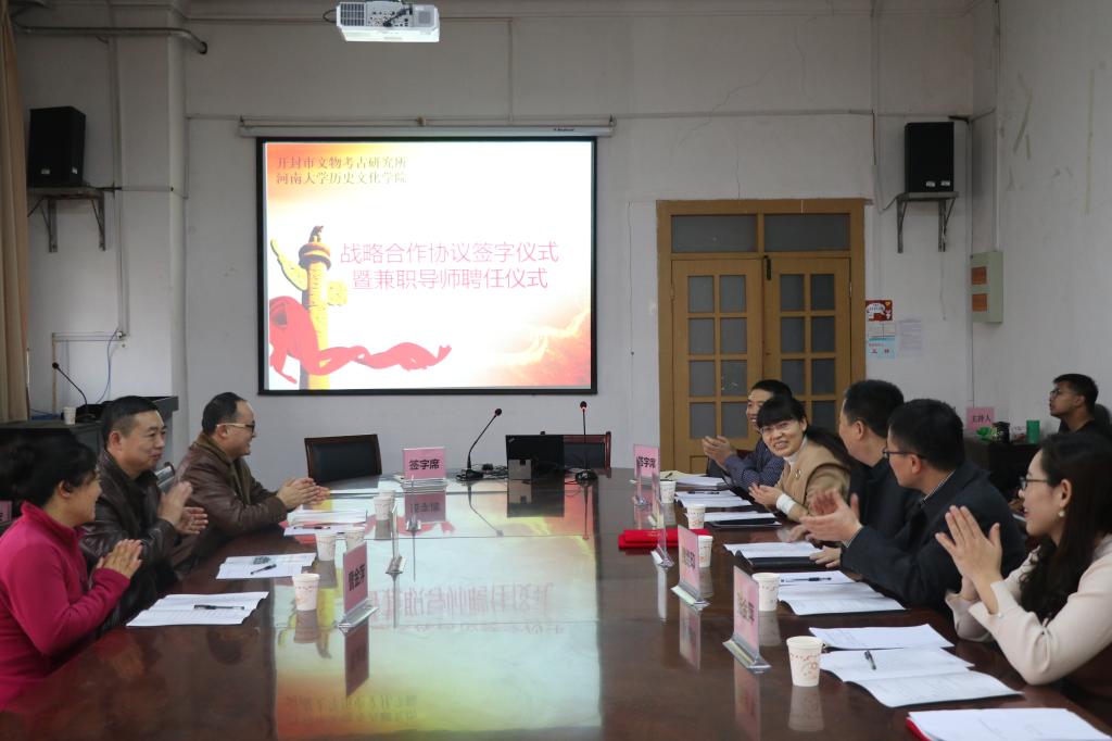战略合作协议签字仪式在学院三楼会议室举行。开封市文物考古研究所所长王三营、副所长葛奇峰、业务主任曹金萍,麻豆社