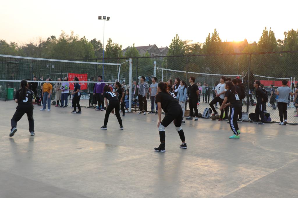 女排选手斗志昂扬,在对手的步步紧逼之下,依然能配合默契,发球、起跳、拦网、扣球,每一次精彩的传球与得分都赢得了现场观众的阵阵欢呼,虽在比赛后期成绩稍稍落后,队员们仍旧毫不气馁,相互鼓励。双方交换位置后,异地再战,队员努力找回状态,即使最终惜败文学院,但仍旧赛出了风格,赛出了水平。