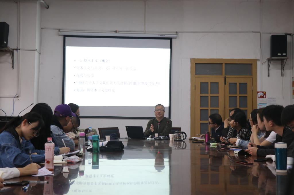 的兼职教授与合作导师,俞教授这次为我们讲授了《资本主义与16世纪以来的世界历史》。他对这个问题关注多年,为了本次讲座,大幅度更新讲授内容,引经据典,详细阐述了“资本主义”的概念,探讨了“资本主义”的本质,强调资本主义对于研究16世纪以来的世界历史的重要意义,认为“近现代的世界历史与资本主义具有极为密切的联系,不研究资本主义我们就难以理解我们的世界及其过去。”他认为“资本主义”是一种特殊的、历史的经济制度,它依赖市场但并不等同于商品经济或市场经济。由于资本的本性是追求利益最大化,许多生态问题与社会问题也随着资本主义的发展愈演愈烈。资本主义生产有一个从破坏到创造的过程,这些问题是其破坏性的体现。就资本主义的变迁问题,俞金尧研究员也提出了自己的观点,认为资本主义虽然在不同时间和地点有不同表现,但其本性是一致的。