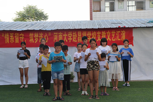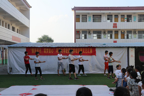 项城昌福学校15天的支教活动已到尾声,在这15天里,爱心支教团教导孩子们的文化课与特长课都取得了显著成效。为展示孩子们多天的教学成果,7月24日下午,昌福学校举行了“情系留守,筑梦连心”麻豆社