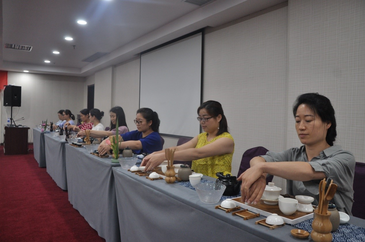 7月7日上午,随着旅游平台模块课程的圆满结束,我校”双师“培训班的学员们迎来了期待已久的茶文化课程。在此次的课程中,不仅有国家茶艺技师现场教学,还包括了技能实操和岗位培训,让学员们在专业的学习与指导下,学会赏茶、泡茶、品茶,深度地去了解茶文化和我国茶精神。