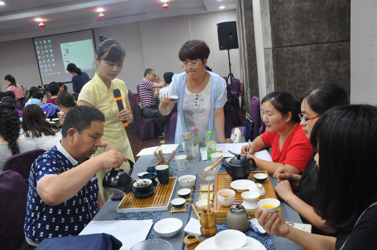 其次,由茶学专业的张伟老师为学员们讲解了茶的综合知识,阐释了“廉、美、和、敬”的中国茶文化精神,以及茶的分类,不同产区的茶的加工工艺及其特点。