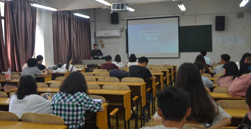 6月11日下午,第22期文化旅游学术沙龙在综合楼217举行。本期活动主题为大学生创新创业项目申报与结项经验交流会。活动由2016级旅游管理专业何凌峰同学主持,邀请了张野老师和六组大学生创新创业项目(以下简称“大创项目”)的团队代表,与16、17级的到场同学分享了关于大创项目申报和结项的相关经验。