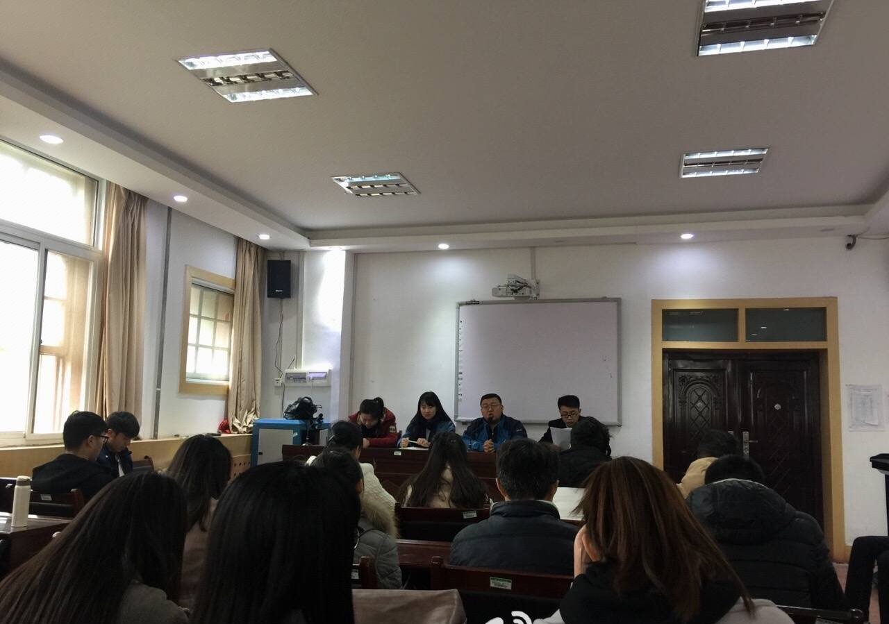 团委书记谢宇飞首先发言,对学生会全体成员在上学期的辛勤付出表示感谢。在简要回顾上学期的工作后,他就整个学生会组织的核心凝聚力、团队精神建设方面发表总结意见。他说,新委员历经一个学期的沉淀,应充分意识到每个人都是学生会这个大家庭的一份子,和睦相处,共建“家文化”。而本学期,希望委员们能通力合作,在工作中不断学习、收获,共同打造“学习型组织”。