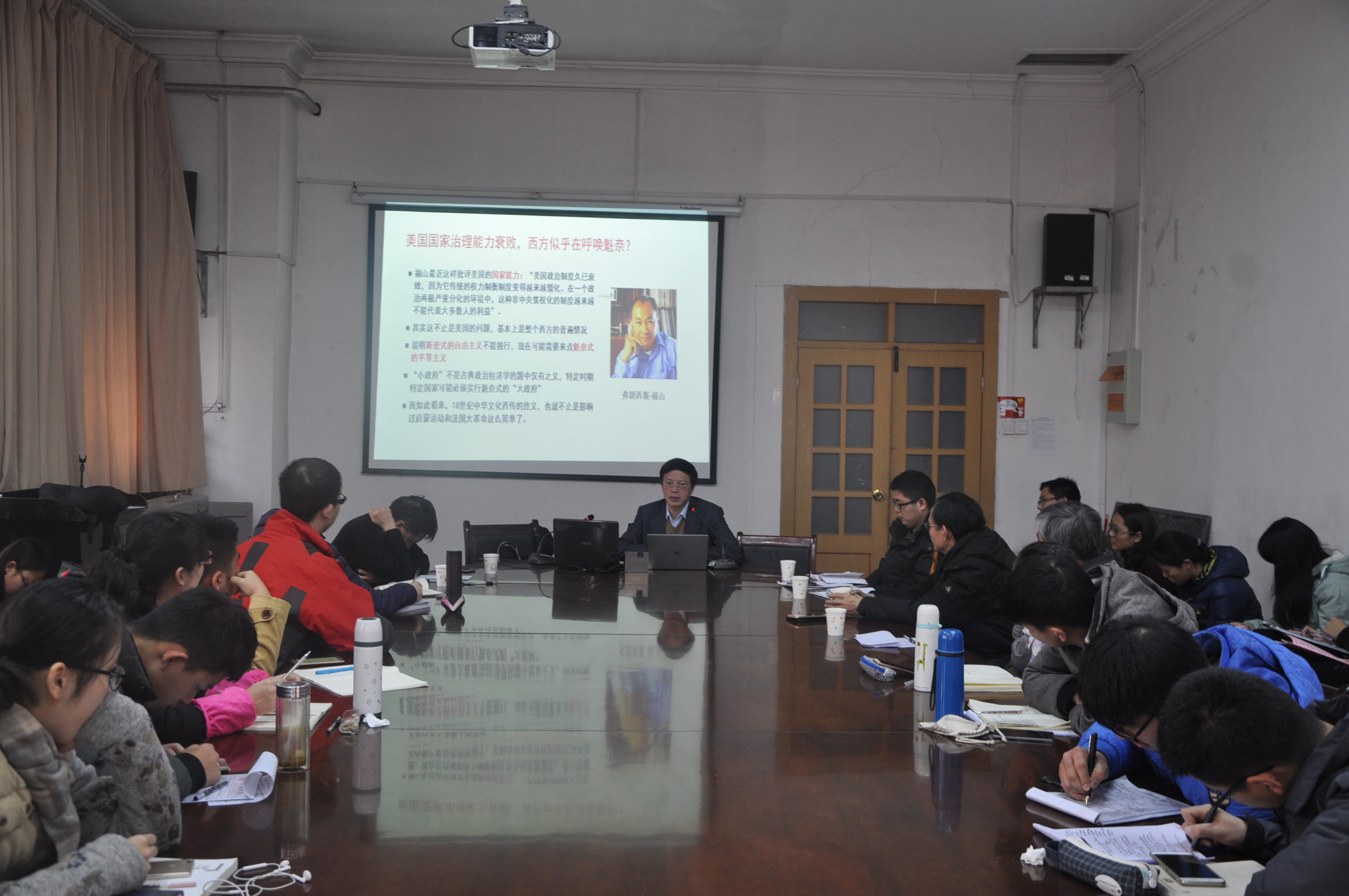 2016年12月18日上午,北京大学历史学系高毅教授应邀在麻豆社 三楼会议室为广大师生做了一场题为《法国重农学派的中国情结及其意义》的专题讲座。讲座由世界史系主任胡浩副教授主持,现场气氛热烈,座无虚席。