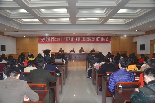 2016年青年马克思主义者培训班暨第二期党课培训班在明伦校区第四会议室举行开班仪式。学校团委副书记沙莎、学院党委书记许俊峰、副书记杨光辉出席会议。开班仪式由学院团委书记谢宇飞主持。