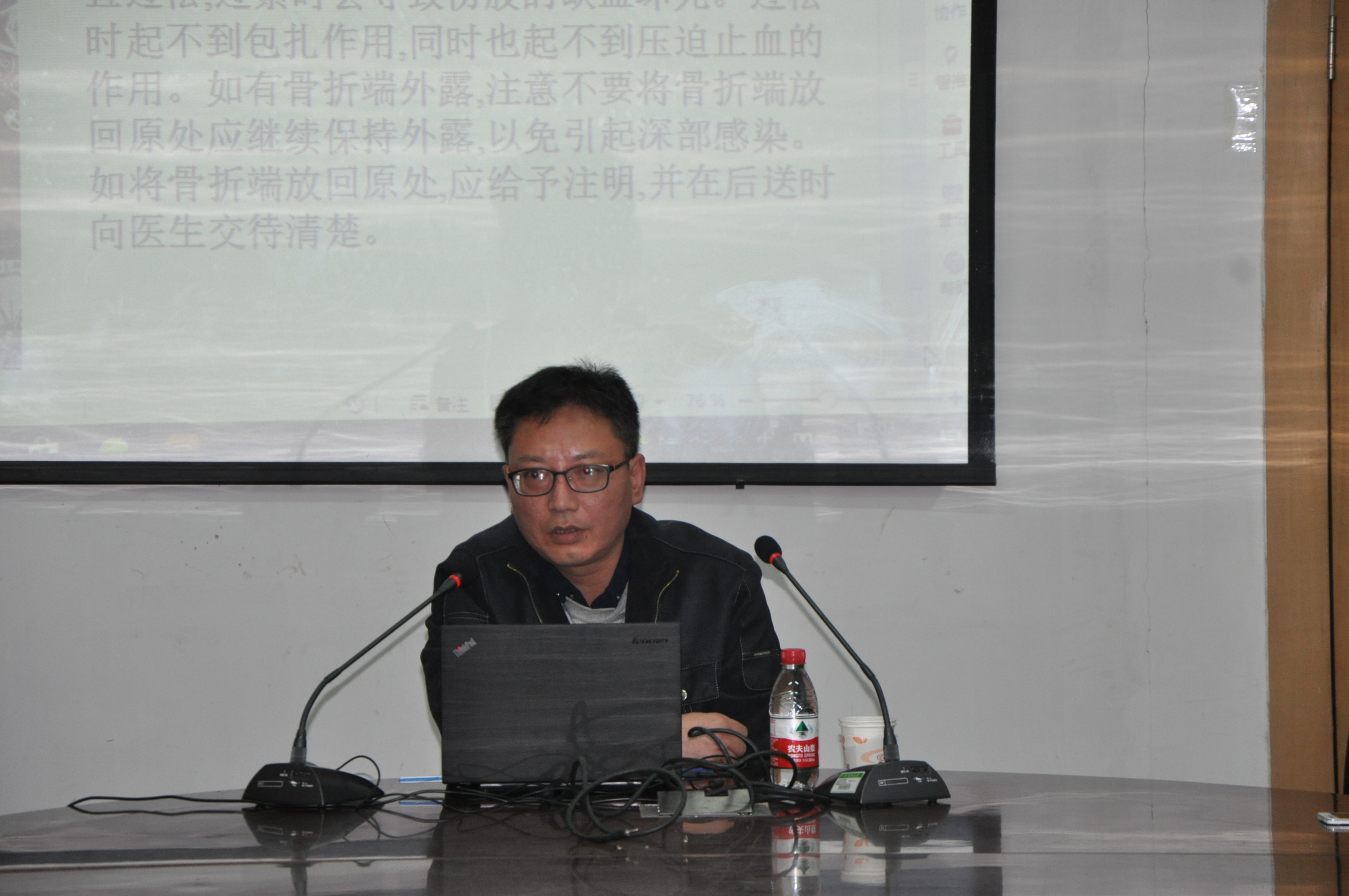 学生会和开封市中医院联合举办的大学生急救知识培训(第2期)在学院三楼会议室举行。本期培训邀请到开封市中医院外科专家、副主任医师王晖做理论培训、外科医师张玉龙进行实践指导。培训活动由学院团委副书记谢宇飞老师主持。