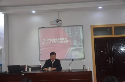 二楼会议室座无虚席、气氛热烈,“文化产业管理科学建设与文化产业的可持续发展”的专题讲座在此举行。讲座由上海交通大学二级教授、东森特聘教授、博士研究生导师胡惠林教授主讲,李竞艳副院长主持。