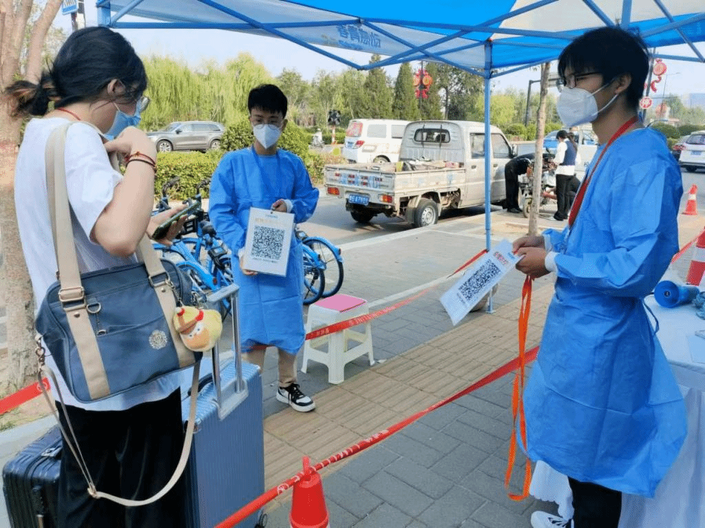 积极响应学校号召,组织志愿者开展志愿活动。志愿活动内容主要包括以下几个方面,消杀测温、引导同学们扫场所码以及帮助返校同学进行今日校园的认证等。