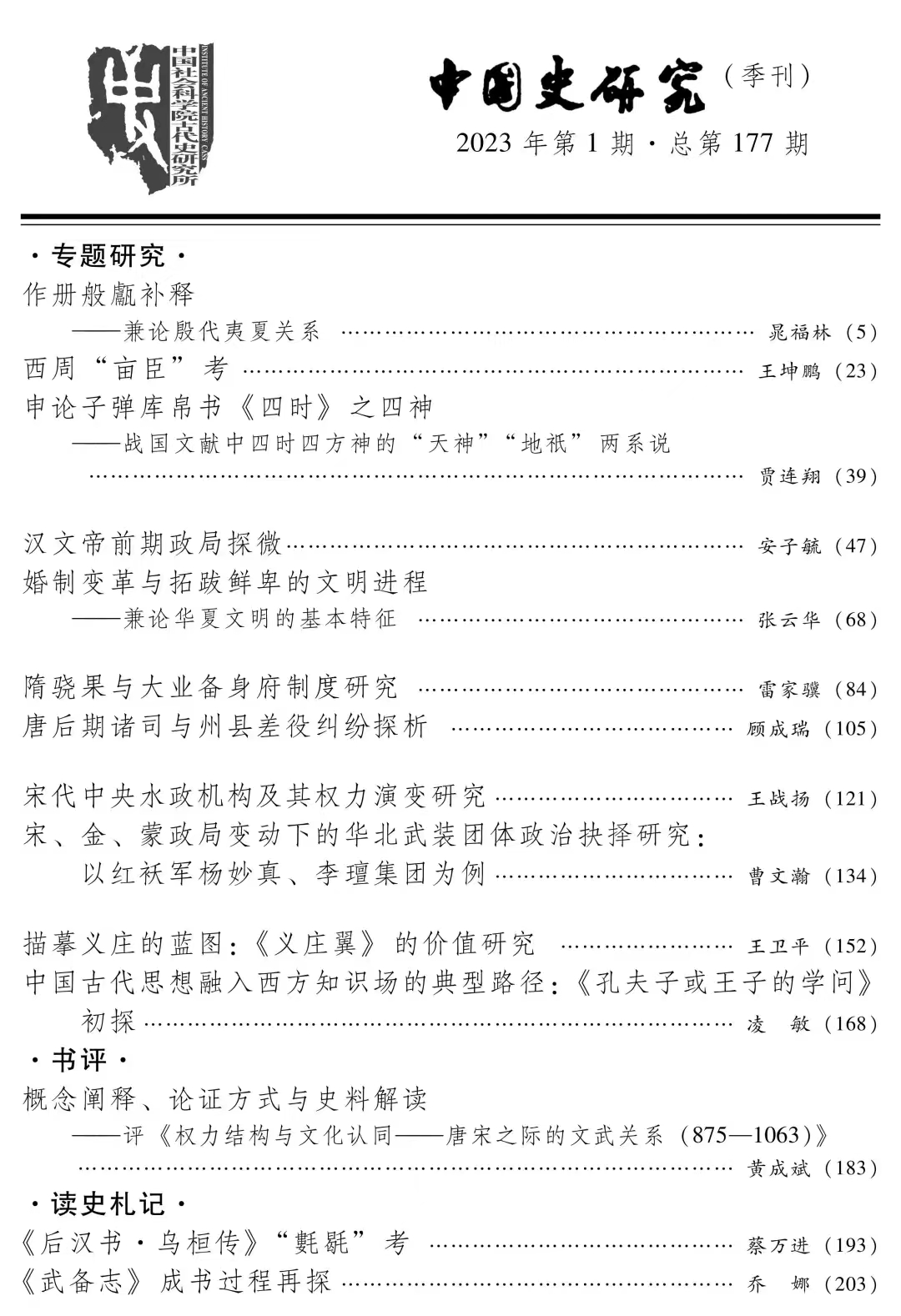 青年教师王战扬在《中国史研究》2023年第1期发表专题论文:《宋代中央水政机构及其权力演变研究》。