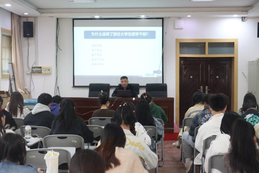 党委学生工作部副部长、学生处副处长刘会军作题为《我们眼中的大学生团学干部》的专题报告,“青马班”全体学员参加。报告由学院团委副书记,2019级、2020级本科生辅导员贾茜贝主持。