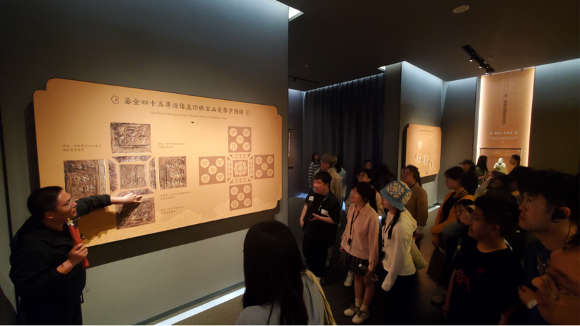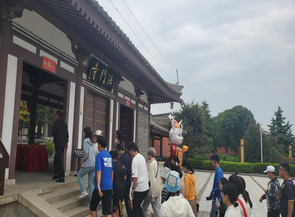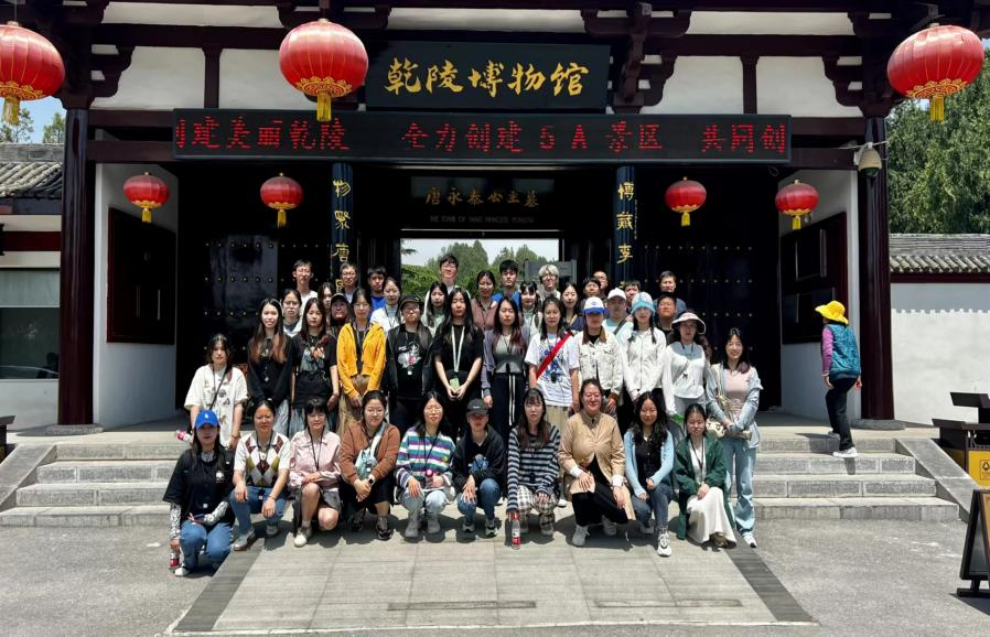 4月27日上午,历史学师生抵达乾陵。乾陵是唐代“依山为陵”纪念性建筑工程的杰作,是唐高宗和武则天的合葬墓。在乾陵,同学们参观了无字碑、述圣纪碑、六十一蕃臣像、石狮等独具特色的石雕艺术作品,还参观了永泰公主墓和乾陵博物馆,从不同角度了解了唐文化。4月27日下午,历史学师生到达法门寺。法门寺位于陕西省扶风县,始建于东汉末年恒灵年间(公元147—180年),距今已有1800余年历史,因供奉有释迦牟尼佛真身指骨舍利而闻名于世。法门寺博物馆藏品来源是法门寺地宫出土文物,馆内藏品类别有金银器、琉璃器、瓷器等。各式各样的大唐珍宝,使同学们开阔眼界,拓展知识。