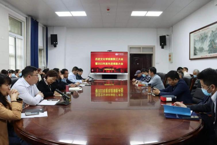 在三楼会议室召开教职工大会暨2022年度先进表彰大会,全院教职工参会。会议由麻豆社