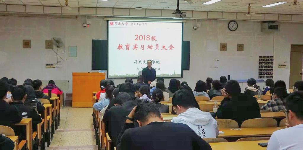 党委书记张占党、副院长魏继印、党办主任兼2018级辅导员王文君、教务办主任张芳芳、中国史系主任马晓燕、中国史系副主任武波和实习指导老师赵金康等人,以及2018级历史学(师范类)、2018级世界史专业的本科生参加了此次动员大会。动员会由王文君主持。